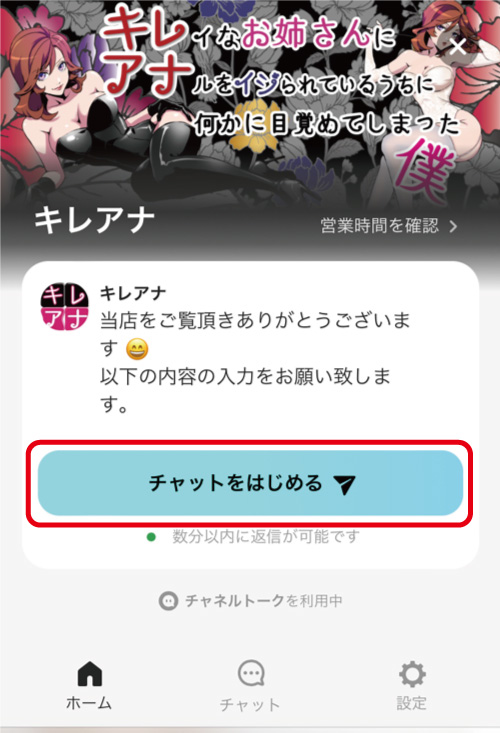 続いて、赤丸の『チャットをはじめる』をタップ。