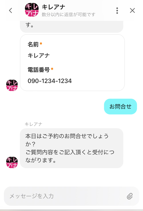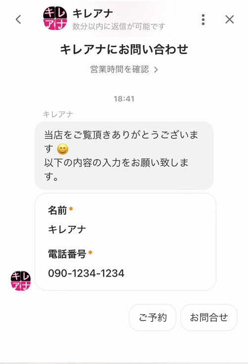 お店の方から返答をさせていただきますので、そのまましばらくお待ちください。