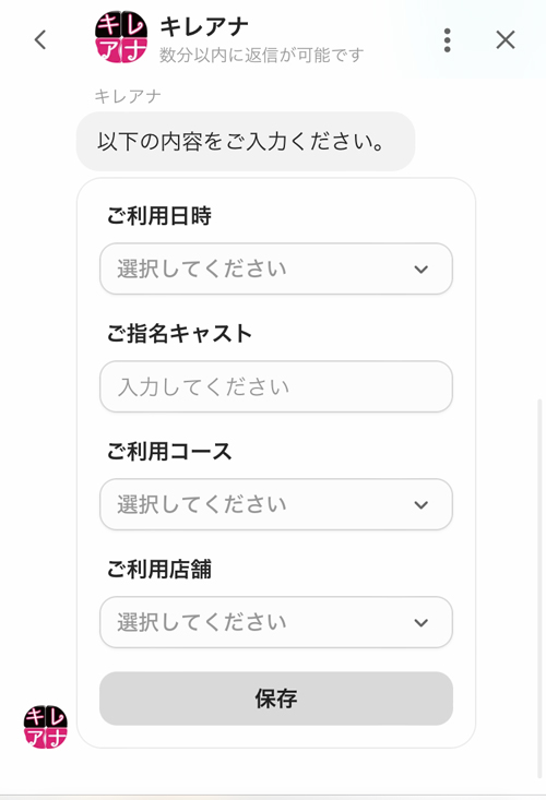 ご希望の情報を入力して保存をタップすると、すぐに空き状況を確認したのち、